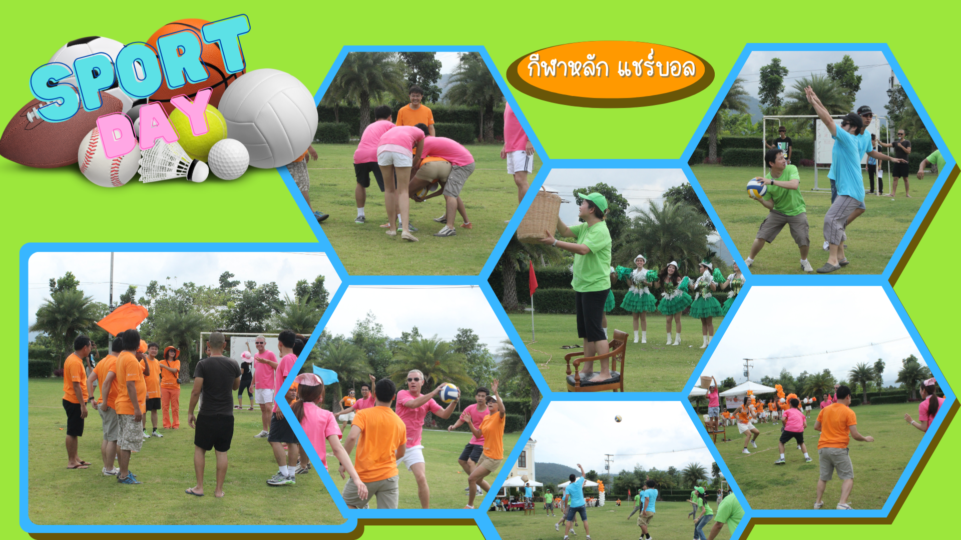 กีฬาแชร์บอล เป็นกีฬาที่เล่นได้ทั้งเด็กและผู้ใหญ่ โดยผู้เล่นแต่ละฝ่ายช่วยกันรับส่งลูกบอลให้ผู้เล่นฝ่ายเดียวกัน นำลูกบอลผ่านฝ่ายตรงข้ามโยนลงไปในตะกร้าของฝ่ายตนเ องที่ยืนรอรับอยู่ข้างหน้า(ด้านหลังของฝ่ายตรงข้าม) โดยโยนให้เข้าตะกร้าให้มากที่สุด และในทางตรงกันข้ามอีกฝ่ายก็จะต้องป้องกันไม่ให้ลูกบอล ส่งเข้าตะกร้าของตัวเอง ทีมไหนโยนเข้ามากที่สุดทีมนั้นเป็นฝ่ายชนะ