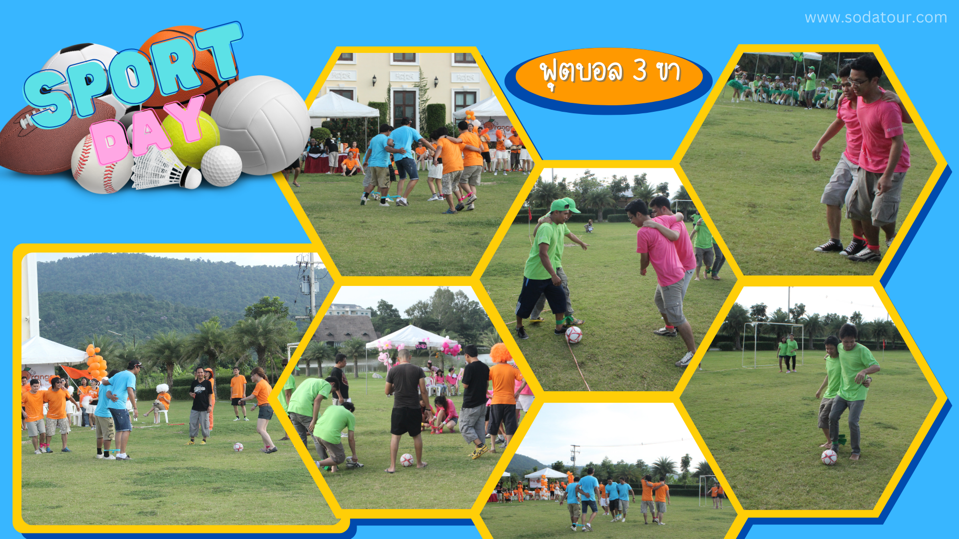 กีฬาฮาเฮเกมฟุตบอล 3 ขา เป็นอีกเกมที่ช่วยให้เราได้ฝึกทักษะการทำงานเป็นทีม ความคล่องตัว ทรงตัว และที่ขาดไม่ได้คือ ความสามัคคี โดยผู้เล่นจะแบ่งเป็นทีม ทีมละ 2 คน แต่ละคนจะยืนหันหน้าเข้าหากัน โดยใช้ขาข้างหนึ่ง (ขาขวาหรือขาซ้าย) ของแต่ละคนมัดติดกัน ทีมแรกที่ถึงเส้นชัยจะเป็นผู้ชนะ