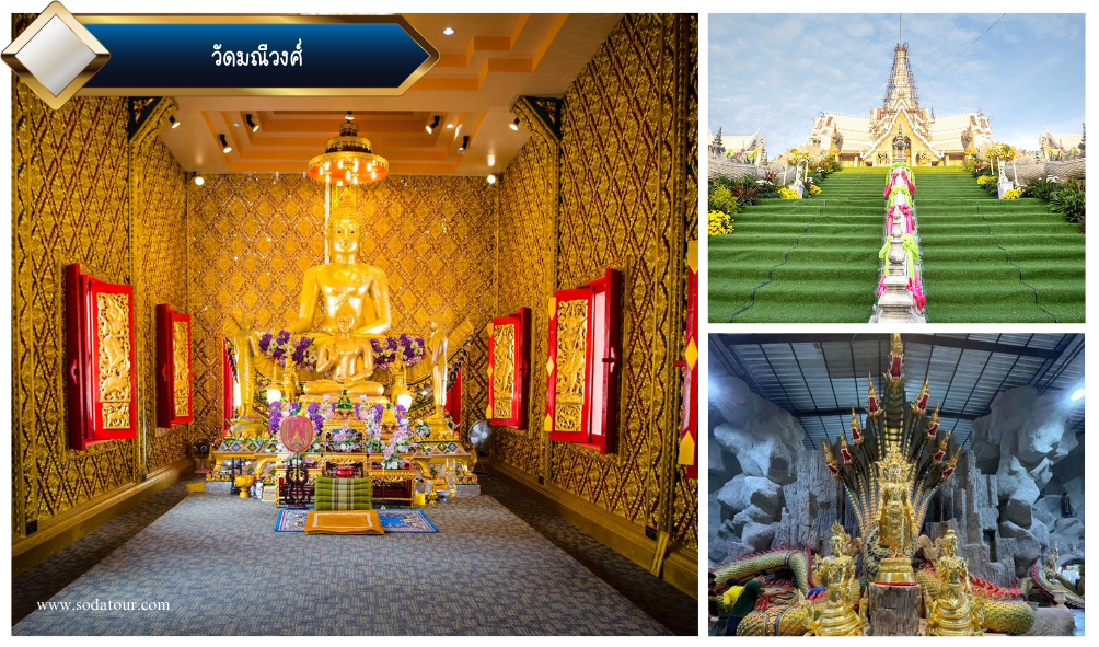 08.30 น. คณะเดินทางถึง คณะเดินทางถึง“วัดมณีวงศ์” วัดชื่อดังเก่าแก่ของจังหวัดนครนายกที่คนท้องถิ่นและนักท่องเที่ยวต่างมากราบไหว้ขอพรอยู่เป็นประจำ เพราะที่เที่ยวแห่งนี้เต็มไปด้วยศาสนสถานสำคัญ และศิลปกรรมต่าง ๆ โดยเฉพาะรูปปั้นพญานาคในถ้ำสุดยิ่งใหญ่ตระการตา ซึ่งมีให้ชมกันแบบเพลิน ๆ เลยทีเดียวไลต์สำคัญที่ห้ามพลาดเลยก็คือ การมาเยี่ยมชมถ้ำพญานาคเมืองบาดาลที่ใหญ่ที่สุดในประเทศไทย
